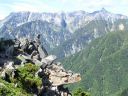 | 程なくして常念岳2857Mに登頂。 記念写真を撮り、蝶ヶ岳を目指す。 | |