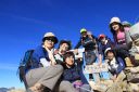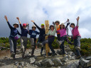 | 時間をおいて各コースのパーティも到着。 蝶ヶ岳山頂2677Mにて参加者全員で記念撮影。 会長の話の後、ビールで乾杯。付近の方と談笑。H・Yさんにまだ名前の分からない会員さんを教えてもらい、多分、参加された方はこれで把握できたのではないかと思う。ただ、しばらく会わないとまた、名前が怪しくなってしまう(汗) | |