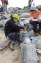 | 山頂手前で雷鳥に会う。私はお初。もう、親も子も同じくらいの大きさ。8羽ほどいて、写真におさめる。 | |