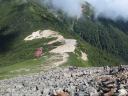 | 各コース時間差をもって下山開始する。これも長い、急な下りである。 | |
