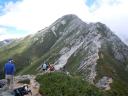 | 大天井岳の山頂でご来光を拝んだ後、常念岳へ向う。 | |