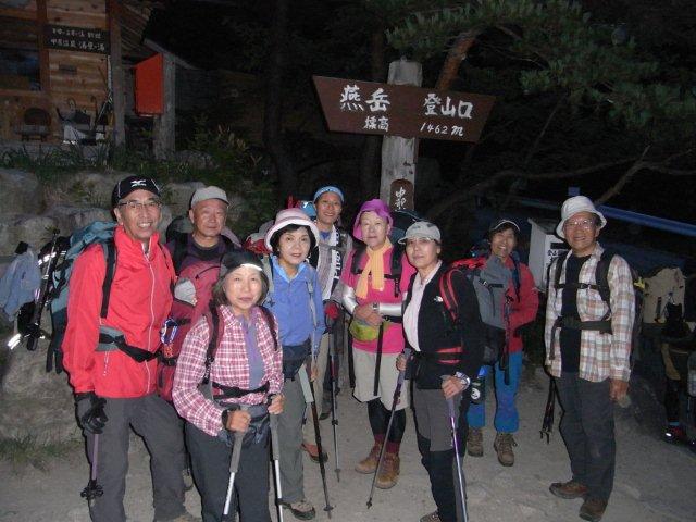 5:20中房温泉に泊まったKさん、Sさんと合流、いよいよスタート