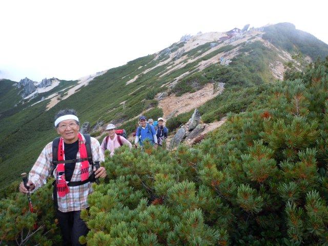 燕岳とお別れ。振り返れば燕山荘がまだ見えます。