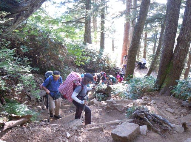 北アの3大急登と言われるだけにキツイ所もあります。暫し休憩。