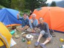 | 1日目( 09/15(土))はウオッ地図からの1/25,000の継ぎはぎコピーを胸のポケットに入れ、島々から心地よい沢沿いの道を歩き、最後の頑張りを経て徳本峠に到着しました。途中、特に危険な個所はなく3人とも快調でした。 | |