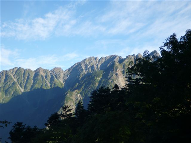徳本峠テント場から穂高(西穂〜明神〜前穂)の朝