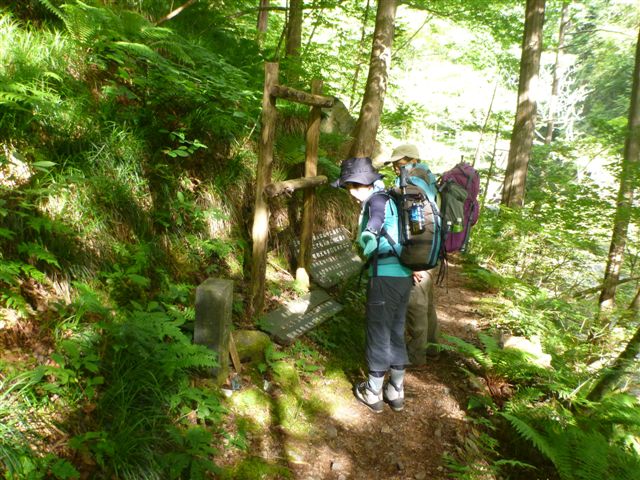 美しい川沿いの徒歩道に、こちらの碑で秀綱夫人受難地と、看板も受難