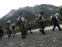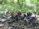 | 蝶ヶ岳ヒュッテ7時10分出発。急坂で濡れており滑るので慎重にゆっくり下る。9時30分まめうち平到着。10時55分三股登山口到着。ほりで〜湯に入り昼食。14時10分ほりで〜湯を出発、20時35分新座駅到着。全員怪我もなく無事集中山行を終える事が出来一生の思い出になる山行でした。 |