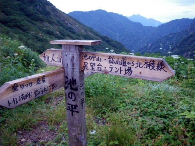 標識の向こうに針ノ木岳
