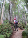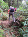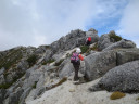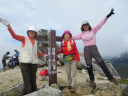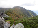 | 【期 日】 2012年9月24日(月)〜26日(水) 【メンバー】 Y.S T.Y N.K 【コースタイム】 9月24日(月) 新座駅6:00−乗用車−伊奈川渓谷登山口10:25−福栃橋11:10−下のコル12:00― 七号目 14:00−水場14:10−越百小屋15:10(泊) 9月25日(火) 越百小屋6:00−越百山7:00−仙涯嶺9:00−南駒ケ岳 10:50−空木岳13:15− 木曽殿山荘15:00(泊) 9月26日(水) 木曽殿山荘5:30−六合目8:10−うさぎ平9:25− 四合目10:00−伊奈川渓谷登山口 11:00−乗用車−新座駅16:30 【コメント】 24日朝6時、車で新座を出発しました。中央自動車道の伊那インターで下り、伊奈川渓谷登山口まで車でゆっくりと 進みました。8台の車が止まっていました。準備をして、登山道を進みました。時々木の根があったりしましたが、歩き やすい道でした。「山小屋には水がないよ。」と言われていたので、水場で水を汲みました。水場を越えたあたりから急 な登りになり、何とか登り切ってしばらくたつと、「三匹の子豚」の木の家のような派手なペンキ塗りたての小屋が見え てきました。泊ったのは私たちを含めて7人でした。夜ご飯は、天ぷらとおでんでした。おいしかったです。ふかふかの 布団で、午後7時には寝ました。「予約制で、20人以上は泊めない。」と山小屋の主人が言っていました。 25日は、ま あまあのお天気でした。越百小屋を6時に出発しました。7時には越百山に着きました。そこから南駒ケ岳方面に向か いましたが、目印のペンキが余りなく、出会う人もいないため、2回ほど道に迷い下に下りてしまいました。元に戻って 道を確かめながら進みました。周りは秋の景色で、色づいていてきれいでした。岩を登っていくと、仙涯嶺に着きました が、看板もなく、ちょっと不安でした。それでもそこから見えた御嶽山は、とても雄大でした。御嶽山に励まされながら 進むと、ようやく南駒ケ岳に着きました。空木岳は、時々姿を見せていました。そこからは、トラバース道で歩きやすか ったですが、空木岳に近づくと、ごつごつとした岩がたくさん現れてきました。ようやく空木岳に着きましたが、まわりの 展望はあまり良くなかったです。その後は、下りでした。岩がずっと続き、下りるのも大変でした。空木岳が岩の山と言 われるのがよくわかりました。それでも15時には木曽殿山荘に着きました。広い部屋に寝ましたが、たくさんの人でに ぎやかでした。 26日は、5時半に小屋を出発しました。登山口には11時に着きました。とても歩きやすい道で、大変 なところはほとんどなかったです。林道歩きが長かったです。無事に下山し、車で新座に向かいました。高速道路もす いていたので、早めに着くことができました。 |