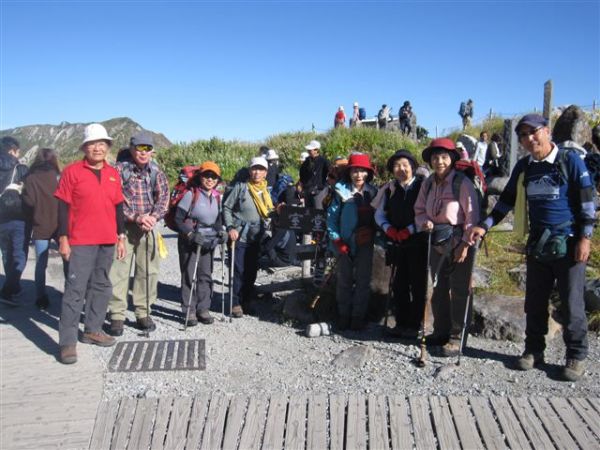 室堂に到着。今日はOちゃん(左から3番目)の百座目登頂記念山行。