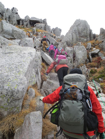 険しい岩場がありました。気をつけて通過します。