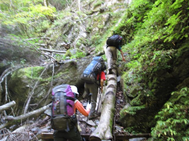 倒木の上を歩く