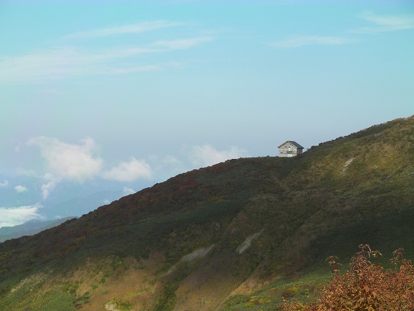 山頂直下の避難小屋が見えてきました