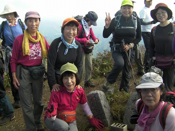 山頂は仲間でいっぱい。全員での写真はムリ・・・