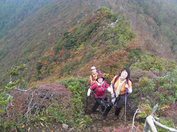尾根に出ると一面錦に染まって
