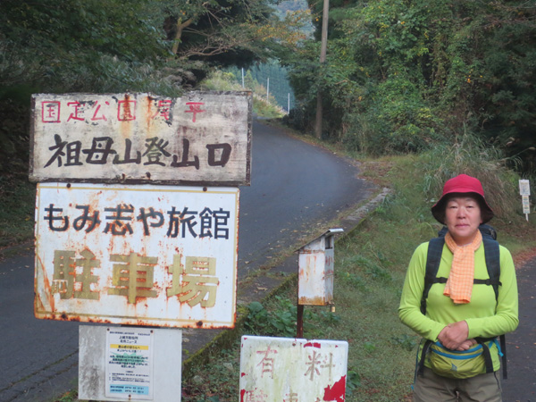祖母山登山口に到着しました。今から登ります。