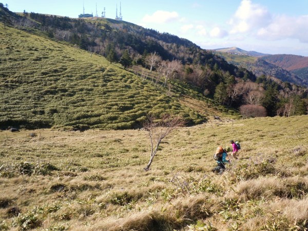 美ヶ原・王ヶ頭のアンテナが柵の向こうに。