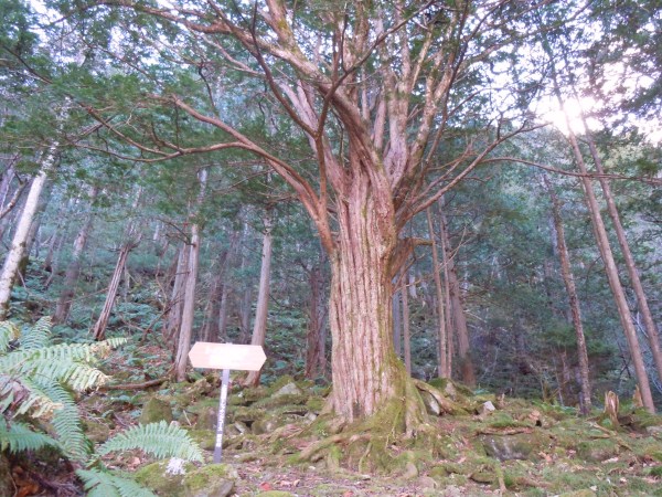 原生林の中のトガの親木。樹齢推定400年、高さ18M、立派です!