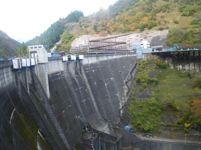 001工事中の二瀬ダムを渡る