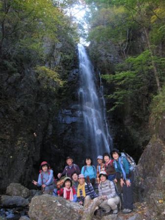百尋の滝をバックにして!