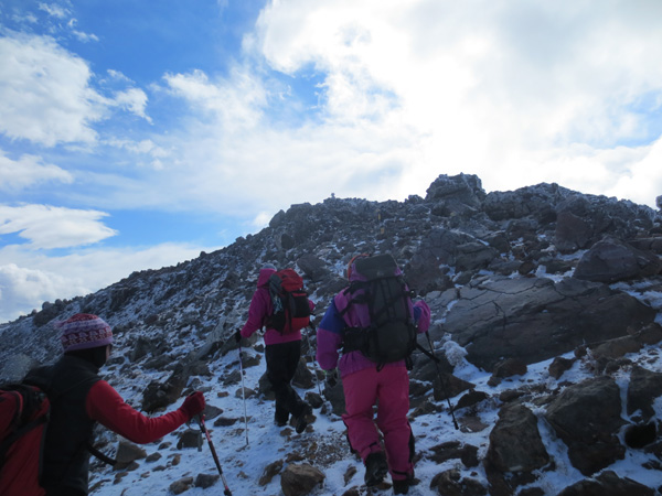 頂上が近くなってきました。風が強かったです。