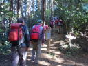 | 【コメント】 西部ブロックの交流ハイク。巾着田の河原でする事になりました。でもその前に山に登りました。武蔵横手駅から、五常の滝ー北向地蔵ー物見山ー日和田山ー巾着田と歩いてきました。いい天気で、富士山もよく見え、スカイツリーも筑波山も見えました。 紅葉はまだでしたが、秋の爽やかな風を受けて歩いてきました。河原では各山の会の方たちが集まって、それぞれの鍋を作っていました。新座山の会は名物のカモ鍋です。美味しくてすぐに無くなりました。 S/A記 |