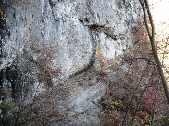 岩の庇の道を振り返ってみる