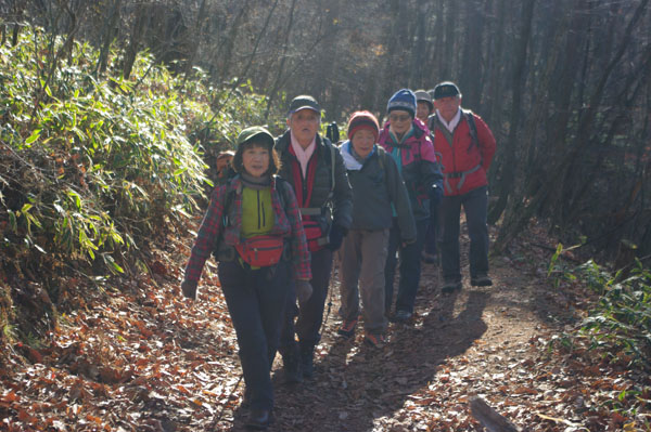 朝日を背に、自然遊歩道を・・・・峰の茶屋を目指す。