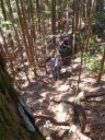| 1時間40分程で林道に出ました。 リーダーが「昔来た時は林道に出るのが大変だったのに」と言います。 |