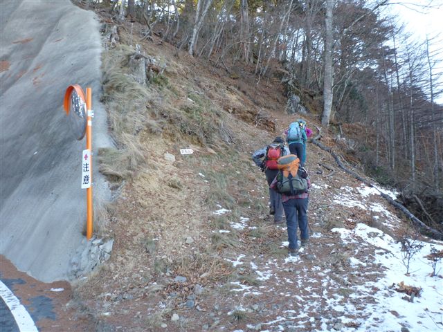 01カーブミラー先の小さな道標には天丸山