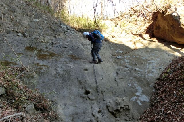 鎖にぶら下がらず岩の上を歩く