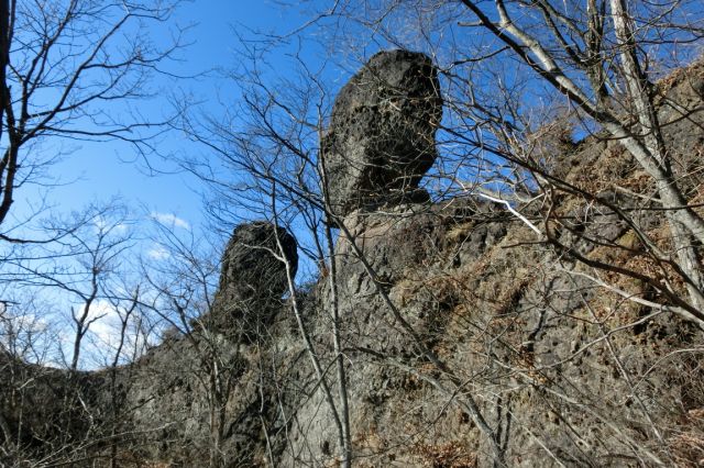 今にも落ちそうな大岩