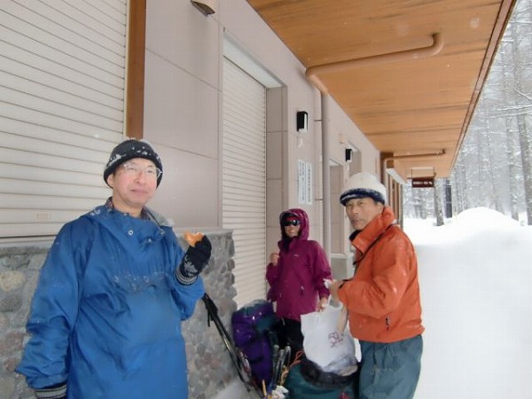 無人のバスターミナルで小休止。気温は−8℃
