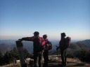 【メンバー】 L=Y.I、 J.I、M.U、E.S 【コースタイム】 生川(一の鳥居)8:00――10:00武甲山10:40――11:50子持山12:10 ――大持山12:50――妻坂峠14:00――生川(一の鳥居)14:40 記録;M.U 【コメント】 クリスマスは冬枯れの奥武蔵で陽だまり山行しようということで、リーダーの車で武甲山の一の鳥居 駐車場まで入った。大陸からの寒波が押し出してものすごい冷え込みです。 この神社の狛犬はは明らかに絶滅した日本狼で鋭い歯をして特徴ある顔立ちでした。 真っ青に晴れ上がった冬の空、期待通りの快晴無風。風の無いのが助かる。 表登山道を山頂へのんびりとしたペースで2時間ほどで山頂の社殿が立派だ。 社の奥の展望台はこの季節最高に見晴らしの良いところだ。浅間山・谷川・武尊・日光連山等々、 あきないねぇー。 子持山へは南斜面を下るのでポカポカ陽気で楽しい。所々で路面が凍っているが問題ない。 子持山で昼食となった。みんなヌードルだ。この寒い時は暖かいヌードルは人気です。 クリスマスだからと一口のフライドチキンを味わった。 大持山から妻坂峠を越えて一の鳥居駐車場に戻った時間も早く武甲の湯に浸かって帰った J.I;記 |