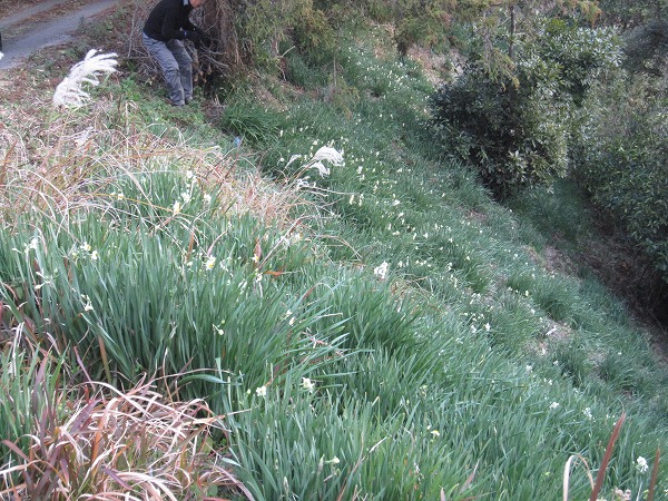 嵯峨山近くの斜面はスイセン畑。花にはまだ早かったのが残念