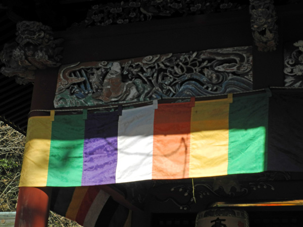 五色の幔幕は、「白」=雲の他、自然の4大要素である「青」 =天(風)、「黄」=地、「赤」=火、「緑」=水を表すという