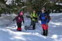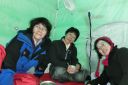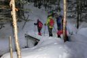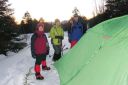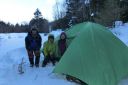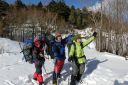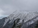 【期 日】 2013年1月18日(金)〜19日(土) 【参加者】 L;M.S、SL;M.U、メンバー;Y.I、H.Y (計4名) 【コースタイム】 (1日目) 新座駅7:00発(レンタカー)〜野辺山・横岳登山口12:10着、12:40発 〜貯水池14:10着、テント設営完了14:50(泊) (2日目) 起床4:30〜テント6:45発〜中間地点標識9:10着〜標高2,600mピーク11:35着〜下山開始12:05 〜テント帰着14:00〜テント撤収、下山開始14:35〜駐車場15:15着〜パノラマの湯16:20着、17:50発 〜新座21:30着 (記録;M.U) 【コメント】 1/18(金) レンタカー利用、Iさんの運転で朝霞台を出発した。途中ナビの不具合があり、また高速を降りてから は道の凍結に注意してゆっくり走ったので、横岳登山口Pには予定より一時間程遅れて到着した。 身支度の後、軽食をとり計画書を提出し車道脇の登山口から歩き始めた。背中の荷物がとても重い。 道は車道を何度かまたいで進んだが、積雪のためルートがわかりにくい所があって時間をとられた。 成人の日に降った雪が膝上まであり、ラッセルに苦労しながら進んだが、風が強く地吹雪となっていたため、標 高をあげてテントを張るのは難しい。本格的な山道に入る手前の貯水池近く、風を避けられる開けた所にテント を張ることにした。都合よくすぐ近くに小さな流れがあって水を汲むことができた。 夕食はクリームシチューとパン。おつまみとアルコールもいただいて話もはずみ楽しいひと時だった。 リーダーがスマホから天気予報を知らせてくれた。明日の午前中は晴、午後から霧がでるらしい。 早めに休み明日に備えることにした。 初の雪山テント泊をかなり心配した私だったが、なんとなく安心し、ほっとしながら眠りについた。 1/19(土) 4時半起床。気温は−14℃だが、あまり寒さは感じなかった。夜中、風が強く心配したが、朝はだい ぶ静かになっていて安心した。 昨夜のシチューの残りに、食担Uさん、Iさんが手を加え洋風雑炊を作ってくれた。あったかい食事で元気が出た。 アイゼンを付け、アタックザックで出発。 登山道には昨日はなかった新しい踏み跡が一つできていた。早朝出発した人がいるらしい。樹林帯をひたすら 登った。 7時過ぎ向かいの尾根上に朝日が昇り、私たちの前方の木々の幹がオレンジ色に染まった。とてもきれいで、皆 で眺めた。 雪は深く、踏み抜くと腰くらいまで埋まってしまい、抜け出すのが大変だった。トップを交代して頑張って歩き、 5時間くらいでようやく三叉峰を望む標高2600mピークに到着。前方左手の赤岳山頂や、横岳奥ノ院の方面は 雲の中に隠れてしまっていたが、富士山や秩父の山々などが見渡せ素晴らしい眺めだった。 天候は下り坂で、時間的に山頂は無理ということで、ここで引き返すことにした。 下り始めてほどなく男性一人が登ってきたが、この人も結局三叉峰の途中で引き返したと、後で駐車場で会っ た時に聞いた。雪の状態が良くなかったそうだ。 下りは順調に歩け、2時間でテントサイトに着いた。 再び重い荷物を担ぎ駐車場まで。帰りはコンビニで教えてもらった「パノラマの湯」の露天風呂で、もう一度大き な富士山を眺めてから帰った。 横岳山頂には立てず残念だったが、色々勉強できた楽しい山行だった。 (コメント:HY) |