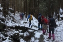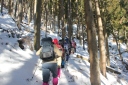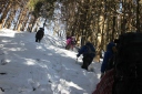 | 【期 日】 2013年1月20日(日) 【参加者】 L;Y.S、SL;Y.Y、 H.S、K.W、S.O、M.I、K.U、T.Y 【コースタイム】 新座駅6:31−飯能駅7:22−バス7:40−名郷8:42−出発8:50−山中9:50−妻坂峠10:50 −武川岳11:50−昼食−出発12:30−正丸峠14:20−正丸駅15:15− (記録;Y.S) 【コメント】 今年初めての山行。飯能市内は雪が全くなかった。 名郷より途中から車道の凍結には慎重に歩く。 妻坂峠まで雪が50〜60cm位だったが、武川岳までは倍近く、尾根沿いは風が強く体感温度も 低くなり、低山でも気をつけなければと考えさせられた山行でした。 (H.S記 |