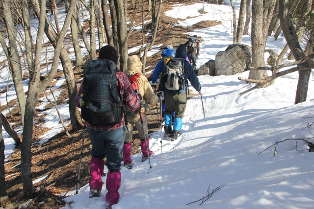 風が強く、雪は吹き飛ばされて、このあたりの積雪は数センチ