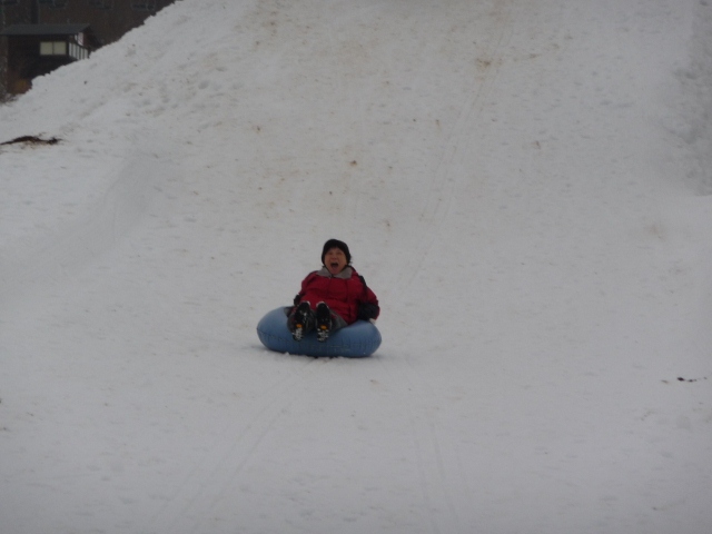 チューブのそりを楽しむEさん