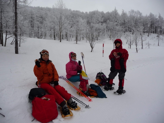 雪の上で休憩