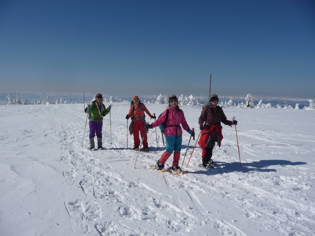 湿原の平らな雪原を楽しんでいます