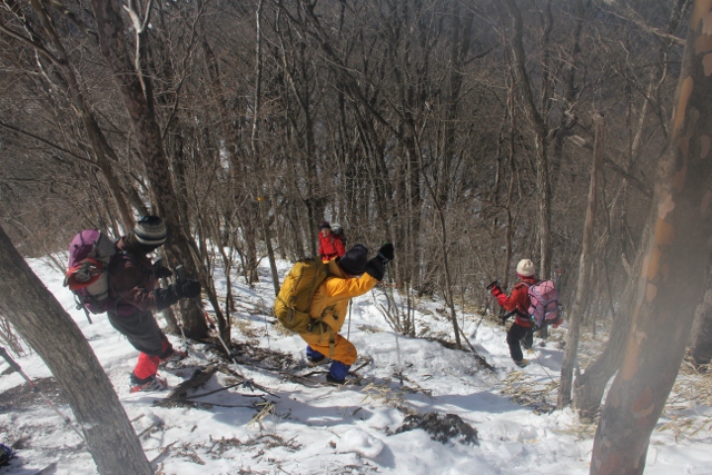 急な下りが続きます アイゼンを効かせて下ります