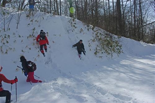 杏が岳には時間切れで行けないので雪と戯れて・・・
