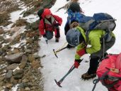 | 【天候・コースタイム】 2月28日(木) 新座駅 20:20発〜志木駅20:40発〜那須道の駅 23:30着〜テント設営(泊) 3月 1日(金) 晴れ時々曇り・風弱い 起床4:00・朝食後テント撤収5:20発〜大丸温泉駐車場5:40着・6:10発 〜 アイゼン歩行・ピッケル操作訓練・耐風姿勢訓練〜峰の茶屋8:00着 〜 ロープ使用登攀訓練(3ピッチ)〜茶臼岳山頂10:30着 〜急斜面の下降・トラバース訓練〜 登山指導所12:30着〜滑落停止訓練13:20終了 〜大丸温泉駐車場13:50着〜入浴〜 志木駅18:30着(解散) (記録 TY) |
