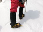 | 【コメント】 3月1日(金)道の駅前夜泊で雪上訓練に行った。道の駅は芝生でしかもその日は気温も高めでテントは快適だった。道の駅なので、トイレ(すごく綺麗)、水道、飲み物の自販機もあったので前夜泊にはもってこいだった。 翌朝は4時起床、5時半出発の予定だったので、テントを張ってすぐに就寝。起床後は朝食をとって出発。登山口近くの駐車場に車を止め、オーバーパンツ、スパッツ、アイゼン、スリング、ヘルメットを身に着けて出発。ピッケルバンドは手に通すものより肩掛け式の方が落失のリスクが少なく安心。ピッケルバンドを身体に掛けてからザックを背負う。 冬の茶臼岳は風が凄く登れないことも多いそうだ。この日は風が強いように思ったが、茶臼岳にしては風が弱い方らしい。だんだん天気が下り坂の予報だったので、先にアイゼン歩行訓練を兼ねて登頂し、また、アイゼン歩行訓練を兼ねた下山をしながら、適した場所で滑落停止訓練をすることになった。 直登のために逆ハの字やアイゼンの前爪を使った歩き方を練習。疲れたときは別の歩き方として、足を山に対して平行にして交互に運んで歩く。アイゼン歩行はいつも思うが雪質によって楽だったり、難しかったり・・・。私としては今回の茶臼岳は比較的歩きやすかった。また、ピッケルの使い方も習う。氷に一振りで支点を作るのはなかなか難しく今後の課題だ。何事も安定してやるには経験が必要と強く感じる。 登りのトラバースと下降のトラバースは理論としては真逆のステップになるのでセットにして憶えたらすぐに身に付いた。標高が高くなると共にさすがに風が強くなった。耐風姿勢を何通りか教えてもらい、それを学ぶのに良い場面が多々あった。リーダーからは風には呼吸があるから、強く吹いている時は耐風姿勢を取り風が弱まったら歩くことを教えられた。 峰の茶屋避難小屋前で小休止。緩やかな夏道ルートを行くかバリェーションの急斜面を行くか、思案の結果経験と楽しみのために急斜面を登ることになった。途中リーダーがやはりロープを出してくださり,皆、安心して登れた。この登りが今回一番楽しかった。1時間位で茶臼岳山頂に立った。皆、茶臼岳の登山経験があるという。小学生の時、家族旅行でロープウェイで茶臼岳に来ただけの私とはさすがに違うな・・と思った。しかも、その時は確か、ガスって展望も悪く山登りも好きではなく、いやいや登った記憶しかない。 下山は出だし、雪があまりなく砂利や岩がつづいた。アイゼンで岩や石の上を歩くのはバランスも難しく普段なかなか出来ないので良い経験になった。下山はピッケルを真横に刺し膝を軽く曲げお尻を落とす感じで下りていく。雪が比較的歩きやすいので下山もしやすい。 滑落停止練習場所を探しながら下りるものの雪が溶けて岩が見えていたり、雪が重くなって 身体が滑らず滑落停止の練習にならなかったり、どんどん下山していった。何とか見つけた鳥居の近くでザックを置き、空身で少し登り返したところで滑落停止の練習をした。ピッケルを胸の辺りで構え、しっかり固定した状態で身体を反転させ、素早くピッケルを刺して体重をかけ、同時に足を後ろに上げて止める。この後ろ足を上げる理由としては、足を下についたままでは、固い雪や氷の場合、アイゼンが雪面に刺さり身体が反転し更に滑るという事故を防ぐためだそうだ。ただ、やり方には色々な考えがあるそうだ。雪の緩斜面なら足を上げなくていいとか、氷だと上げないといけないとか・・。そんなことは滑っている時に判断できないので、先ずは教えて頂いた形を覚えることにする。 また、胸で固定したピッケルも反転の反動で顔の近くに行かないよう脇を締めてしっかり固定する。顔を切ることがないように。リーダーに一人ずつ基本姿勢を確認してもらい実践も2回くらい出来た。 その後、登山口まで下山している途中に、ルート上に良い滑落停止練習場所があり、全員が実践出来た。今度は凄く滑った。身体を反転させるとともに足を後ろに上げピッケルに体重を乗せる。2〜3mくらい滑って停止した。すぐに止まるものと思っていた私は少し驚いた。スピードがつくと案外止まらないものだと思ったが、固い雪であればピッケルの制動が利いてもっと早く止まるそうだ。リーダーが言うにはそれでも止まらなければ、2回でも3回でもピッケルを刺しなおすそうだ。それが私に出来るかどうかは分からないけれど、頭の片隅においておこうと思う。 無事下山して温泉に入りIさんの運転するレンタカーで岐路に着く。 今回のアイゼン歩行練習、急登ルートをロープ確保で登ったこと、耐風姿勢のとり方、ピッケルの使い方、メインの滑落停止。どれも大変勉強になった。そして、私はこんなことを考えた。 たとえば買い物に行く時、現金で買うなら大体買うもよりお金は多めに持っていく、もちろん安心のためである。足りないと物が買えないので困る。今回の
