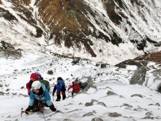 斜面に手や膝をつくとスリップの危険がある