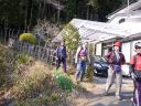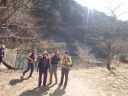 | 獅子岩分岐に戻って、岩登りのゲレンデへ向かう踏み跡を東側に探しながら下る。残念ながら、道は南から南東に向かい、とうとう高麗川近くの民家の裏手に出てしまった。メンバーも、もう岩登りゲレンデに登り返す気は失せたようであった。岩トレを見るのは富士見岩コース等を歩く次の機会に回そう。 |