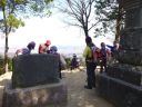 | 山頂にも北西風が通り抜けて寒い。それでも山頂を目指してくるグループが次々と現れる。南東の平野を展望するが空っ風が巻き上げた埃で霞み、近くしか見えない。スカイツリーや都心のビル群も姿がなかった |